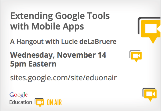 You don’t have to choose between mobile or Google tools.  Some of these Apps actually play well together. Learn how you can leverage the power of mobile (including iPod/iPad apps) to extend the power of Google tools in your school.  The session will include examples from Kindergarten to Higher Ed.